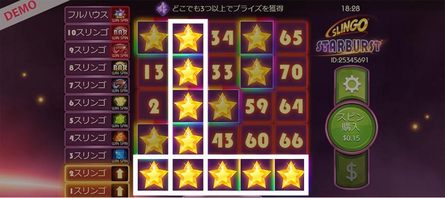 必ずスキャッターが出る特別ボーナスなので、スリンゴ・スターバーストだけでなくスロットのスターバーストでも大勝利できるでしょう。